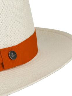 The monochrome hat is the ideal companion for sunny days. Thanks to its 100% finely woven Panama straw material, it is lightweight and breathable. It also provides effective protection from the sun with an integrated UV protection factor of 50 and a brim width of 6.5 cm. The classic grosgrain ribbon trim in a contrasting colour with brand pin is a real eye-catcher.