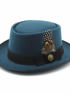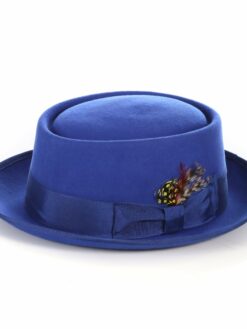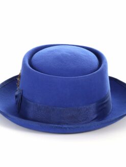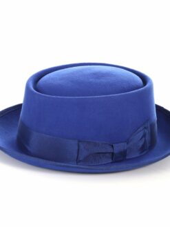 The Royal Blue Wool Felt Pork Pie Hat, a timeless accessory that combines elegance and style. Crafted from premium fur felt, this hat features a distinctive flat crown and a narrow brim, providing a sophisticated yet casual look.