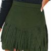 - Premium Fabric: Cupshe fringe skirt is made of 92% Polyester, 8% Spandex. The fabric is soft, lightweight, breathable, and slightly stretchy, ensuring durability and comfort. The high-quality faux suede texture delivers a chic western vibe while staying easy to clean and care for. The green tone is versatile and trendy, pairing effortlessly with seasonal outfits from casual daytime looks to chic evening styles
