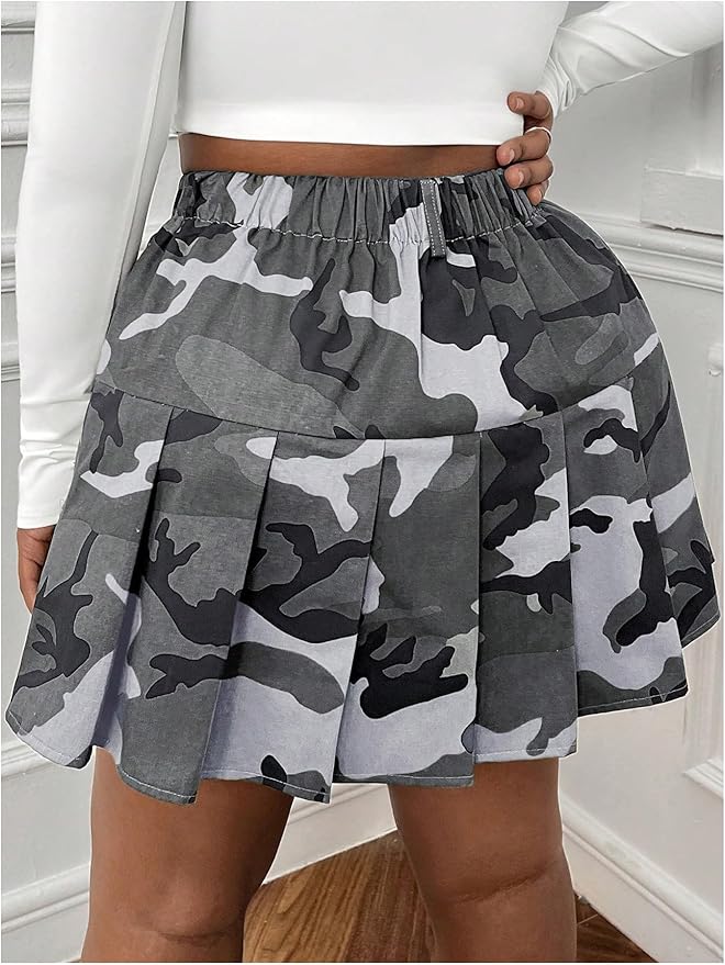 - Casual camo print pleated skirts for women