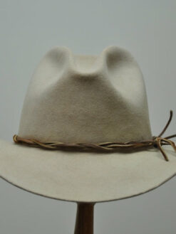 Crown height is 5 1/2″ in back and 3 3/4″ in front with hand shaped crease