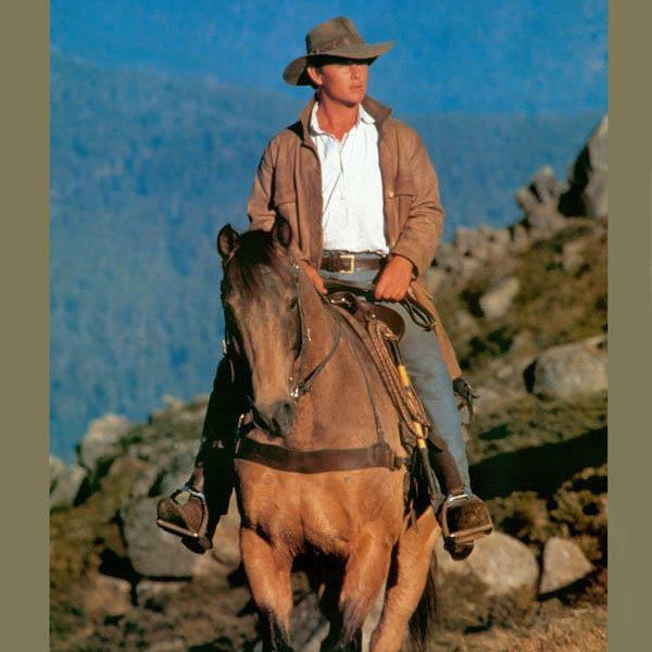 The Snowy River is a pre-creased stockman’s hat from Akubra, a classic Australian outback hat. It has a pinched telescope crown and a brim with rolled sides with front and back turned down. This enduring outback style may be worn over the eyes or well back on the head in typical Australian fashion. The crown is 4 inches high. The brim is 3″ inches wide, with a raw edge. The pure fur felt is Akubra’s Imperial Quality. The hat is fully lined and has a bonded leather ornamental band. Reeded roan leather sweatband. UPF rating 50+. Made in Australia.