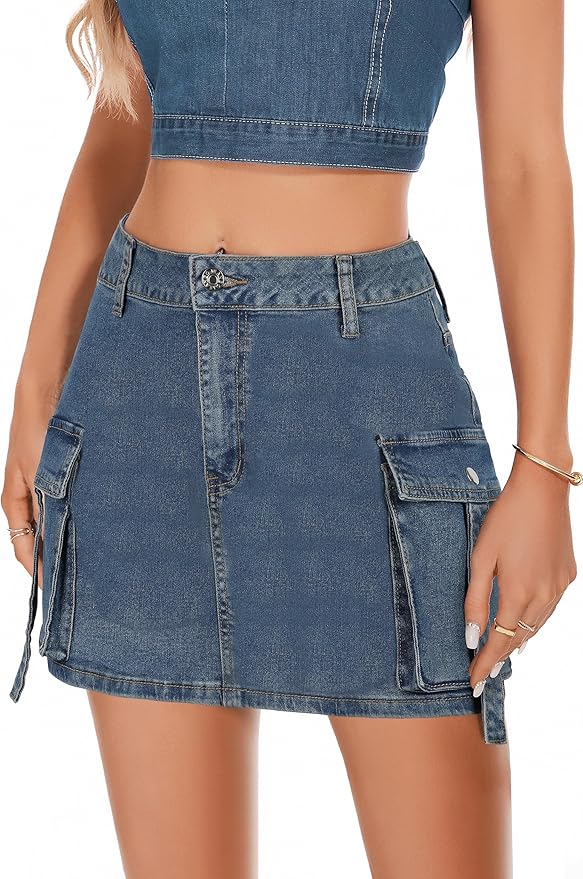 - 【Style】Comes with button closure, zipper fly, high waist and it matches with 4 pockets, which are deep and big enough. The mini skirt designed with exceptional elasticity for a snug fit that flatters all body types.
