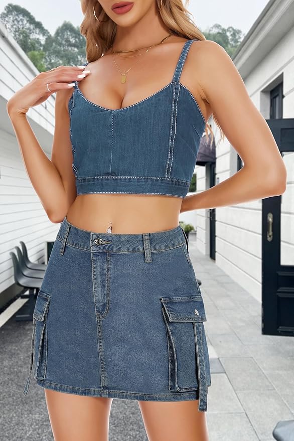 - 【Material】Cargo mini skirt women made of 100% cotton, skin-friendly, soft, comfortable for all-day wear. Enough stretchy giving you comfortable feeling.