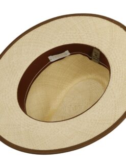 Optimally prepared for summer temperatures and bright sunshine: this Panama hat. The tightly woven Panama straw provides cooling shade for the head and face while offering light and airy comfort. The monochrome sun hat owes its striking look to a narrow trim band made of high-quality imitation leather and a matching brim edging.