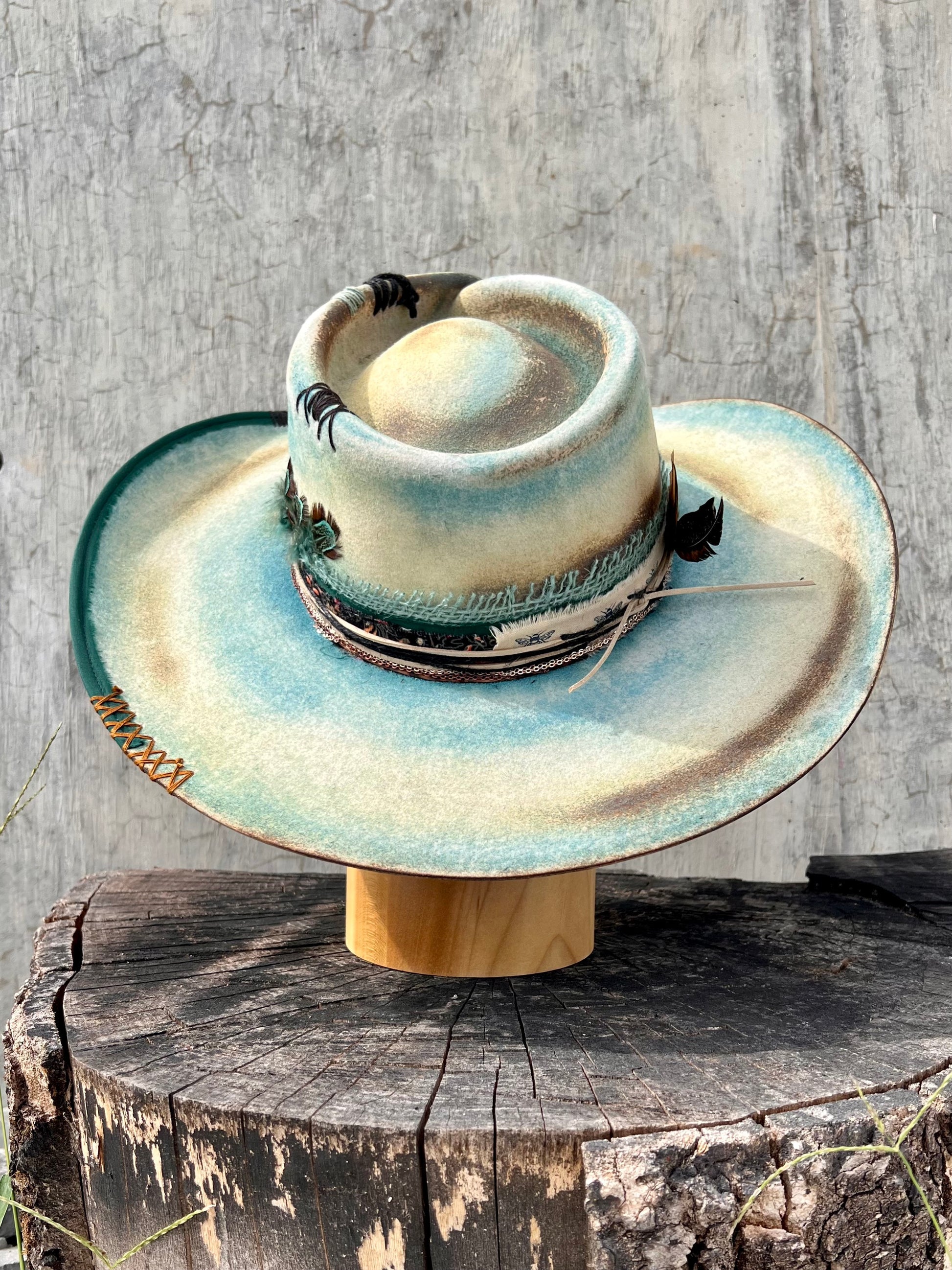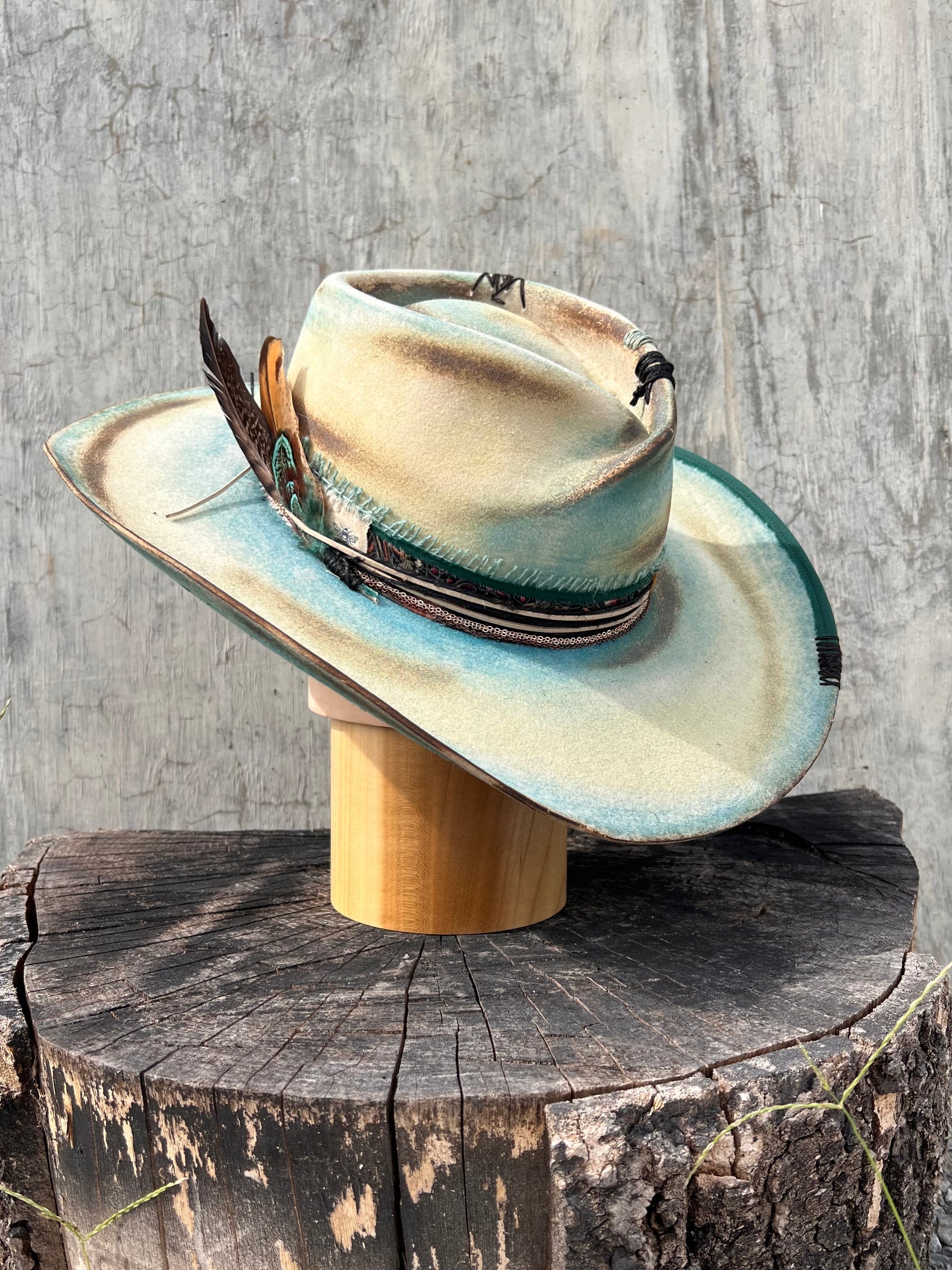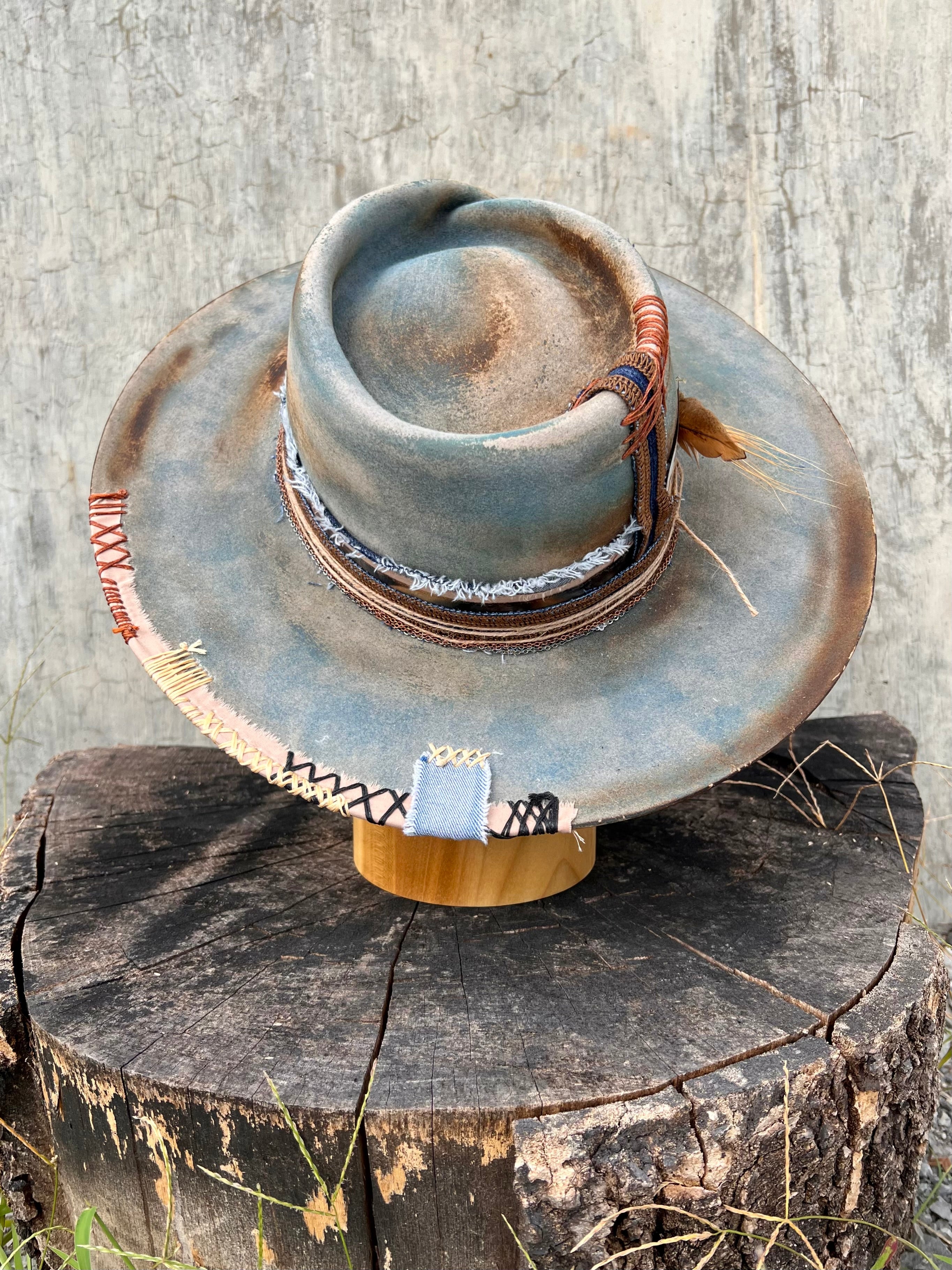 All vintage-style hats are hand-distressed, hand-dyed, and hand-torched, ensuring no two share the same color or design. Each piece is uniquely imperfect, with subtle variations from product images.