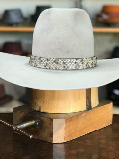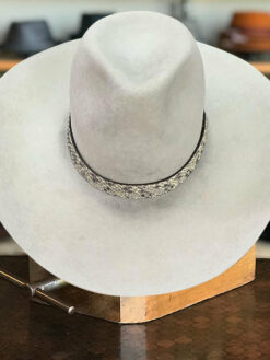 - Hatband: 1″ rattlesnake with 1″ silver concho