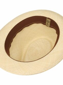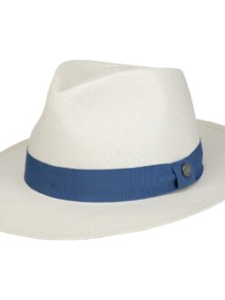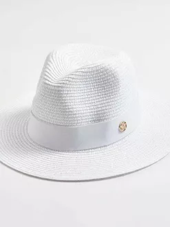 This is what a trilby should look like indented crown, cheekily turned up brim at the back, monochrome summer colours and encircled with an elegant striped grosgrain ribbon trim. Its visual strengths are complemented by its unique quality Panama straw has been woven by hand to create this holiday hat, giving it an air of comfortable ease whilst the silicon-reinforced crown helps it maintain its shape at all times. An extraordinarily becoming hat with sophisticated flair.