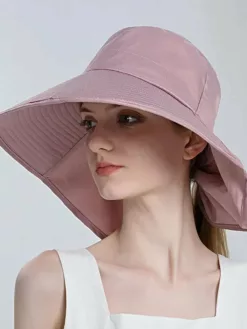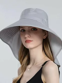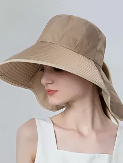 Shield yourself from the sun in style with our Women’s Outdoor Neck UV Protection Wide Brim Bucket Hat. This chic and functional hat is designed to provide maximum sun protection for your face, neck, and shoulders during outdoor activities. Stay cool and protected while flaunting a trendy look with this wide-brimmed bucket hat specially crafted for adventurous women on-the-go.